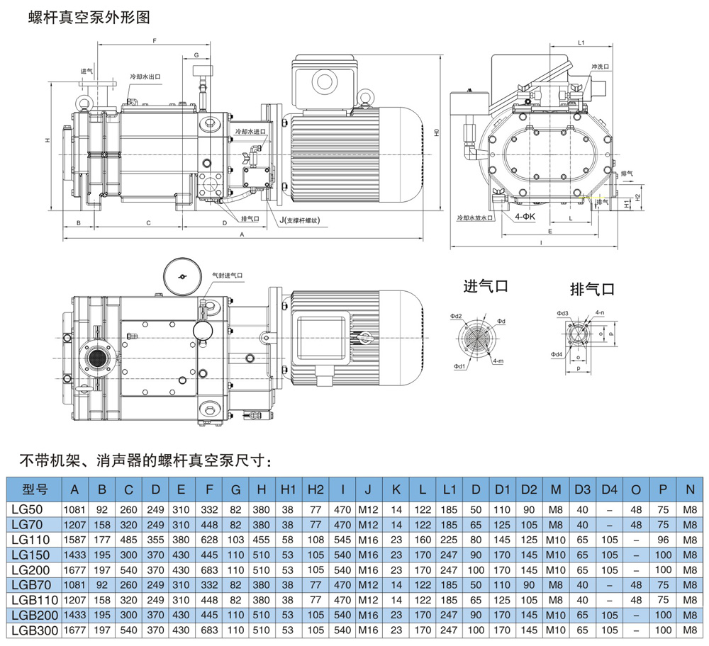 4、LG系列螺桿泵轉(zhuǎn)子間隙相對較小,極限真空度更高,適用于半導(dǎo)體、電子工業(yè)中要求無油潔凈的工作場合;LGH系列螺桿泵轉(zhuǎn)子間隙相對較大,極限真空度相對低一些,泵腔及轉(zhuǎn)子表面有鍍鎳層或PTFE涂層可供選擇,可抽除大量水蒸氣及多種腐蝕性介質(zhì),適用于化工、制藥等工作環(huán)境較為惡劣的工作場合。