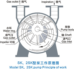 SK、2SK及SZ型水環(huán)式真空泵除了能抽吸一般性氣體外,主要優(yōu)點(diǎn)是能抽吸可凝性氣體(如水蒸汽)。由于液環(huán)泵具有等溫壓縮的特點(diǎn),所以該泵亦能抽吸易燃易爆及含腐蝕性的氣體。