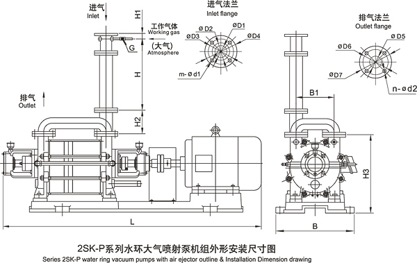 2SK-P系列水環(huán)大氣噴射泵機組外形安裝尺寸圖